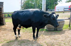 ![]() Blue Ameraucauna hen, 3 Swedish Olandsk roosters & 1 Noa Ranger hen | ![]() CC, the broody Cochin/Cornish mix | ![]() Daisy & two calves |